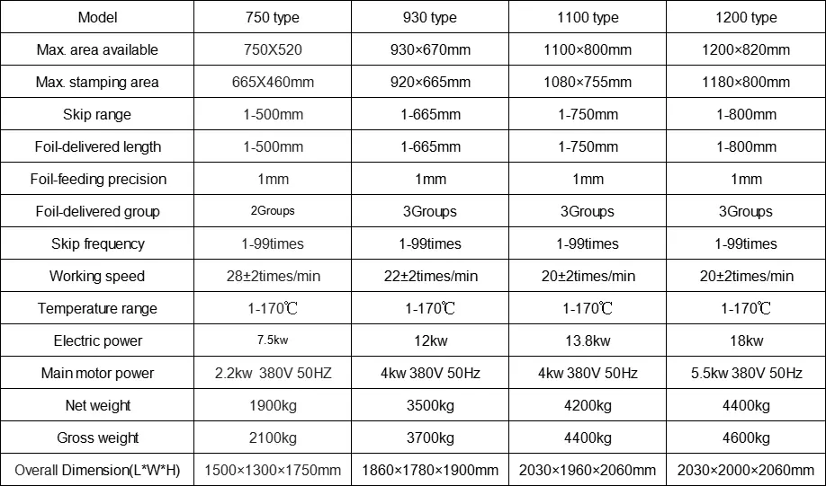 Χρησιμοποιούνται για καυτή σφράγιση όλων των ειδών χρώματος αλουμινίου αλουμινίου και ανάγλυφου ή κοπής διαφορετικών ειδών εικόνων, Έκτονες ενδυμάτων, ευχετήριες κάρτες, το εμπορικό σήμα, τα βιβλία, τα βιβλία, τα χαρτοκιβώτια συσκευασίας, τα χαρτοκιβώτια, οι χάρτινες σακούλες, τα μαξιλαράκια φελλού, οι φακέλοι και άλλα υλικά διακόσμησης και εκτύπωσης υψηλής ποιότητας κλπ. Τα κατάλληλα υλικά προϊόντων περιλαμβάνουν χαρτί, χαρτόνι, πλαστικό (PVC, PP, PE), δέρμα, ξύλο και φελλό κ.λπ., έτσι ώστε να είναι απαραίτητος εξοπλισμός για την εκτύπωση εργοστασίου, επιχειρήσεων συσκευασίας και κατασκευαστή γραφικών γραφείων.
