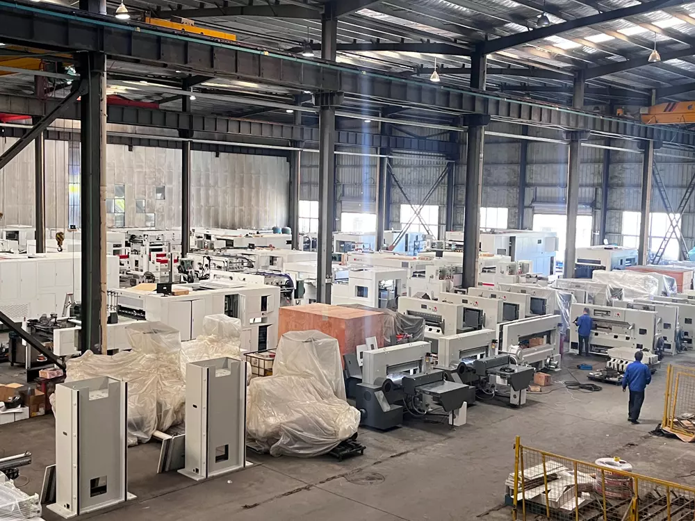 Το εργαστήριο συναρμολόγησης για μηχανές κοπής χαρτιού